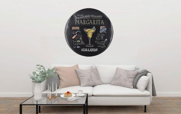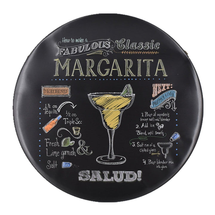 Margharita Round Metal Tin Sign Poster will adorn the look and feel of your wall. This versatile and durable tin sign, metal wall poster can be stuck in any corner of your room, office, shop, shed, garage or store and it will look just as great. Imported Iron. Fashion & Retro Quality Tinned Skin. Four pre-drilled holes for hanging or you may use double-sided tape.