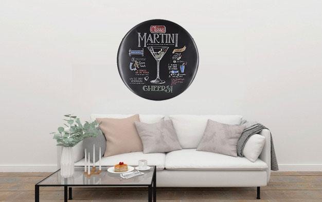 Martini Round Metal Tin Sign Poster will adorn the look and feel of your wall. This versatile and durable tin sign, metal wall poster can be stuck in any corner of your room, office, shop, shed, garage or store and it will look just as great. Imported Iron. Fashion & Retro Quality Tinned Skin. Four pre-drilled holes for hanging or you may use double-sided tape.