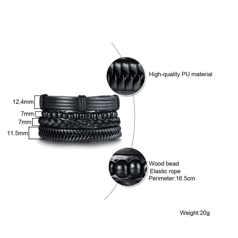 4 Piece Set Handmade Black Adjustable Mens Bracelet Set are sure to be the finishing touch to any outfit. Exquisitely crafted and will give your designs an elegant appearance.