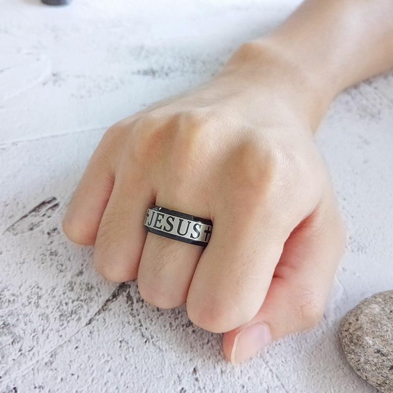 Mens Black Jesus Cross Ring