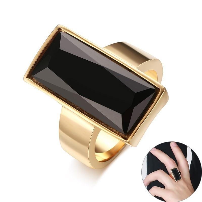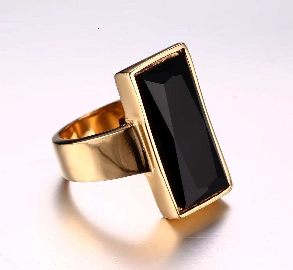 This ring is the perfect statement piece for a man that loves a bit of bling. With a wide band and even larger vertical rectangular setting this ring is sure to get noticed when you are out and about. The ring features a large glass stone that looks every bit like a large sparkling diamond.