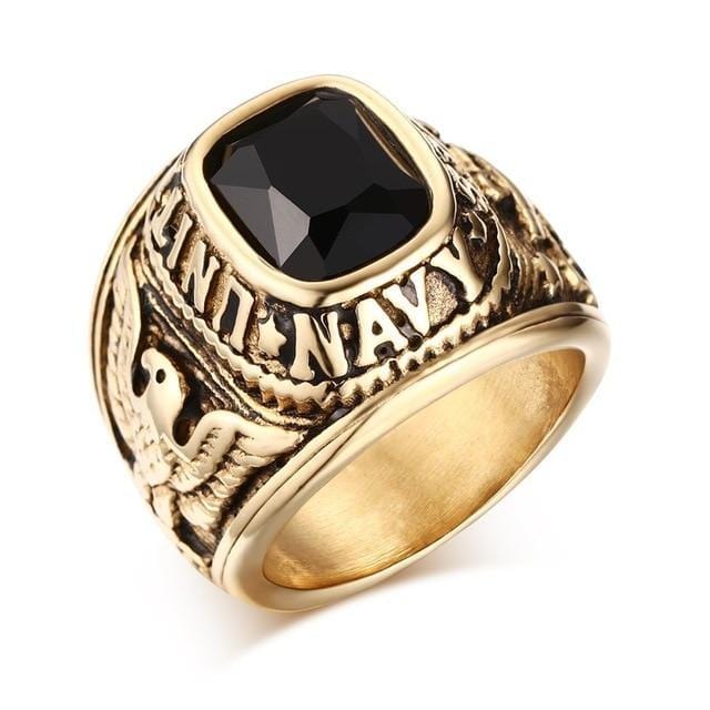 Mens Gold And Black Gemstone US Navy Style Ring
