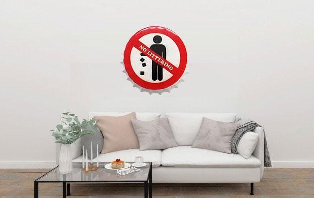 No Littering Beer Cap Metal Tin Sign Poster will adorn the look and feel of your wall. This versatile and durable tin sign, metal wall poster can be stuck in any corner of your room, office, shop, shed, garage or store and it will look just as great. Imported Iron. Fashion & Retro Quality Tinned Skin. Four pre-drilled holes for hanging or you may use double-sided tape.