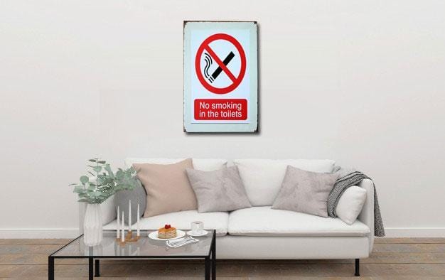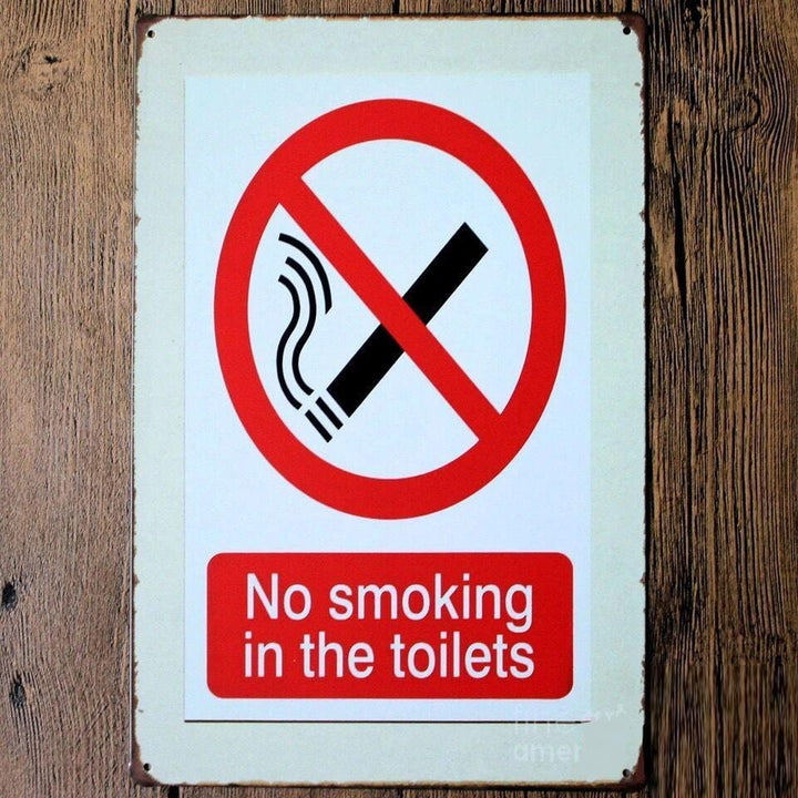 No Smoking in Toilets Sign Tin Poster will adorn the look and feel of your room's wall. The wall poster has dimensions of 20 x 30 cm and can be stuck in any corner of your room and it will look just as great.