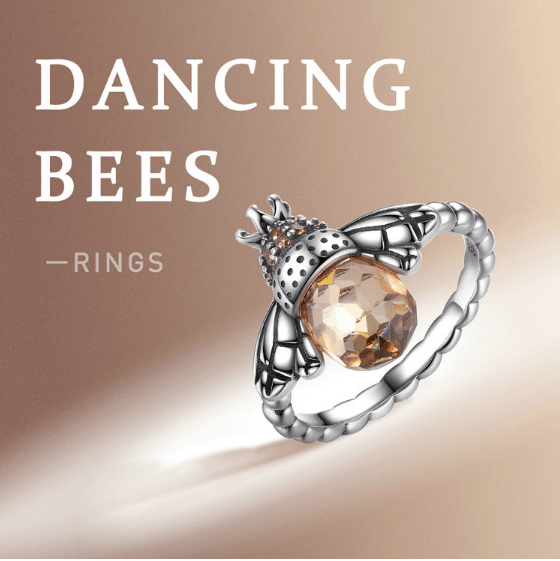 Silver Bee Ring. Handcrafted and featuring exquisite detailing, this stunning bee ring will instantly add a touch of elegance to any modern outfit. With a beautiful silver design and amber accents through the use of gleaming beading and precious stones, this ring is the perfect way to make a stunning statement.
