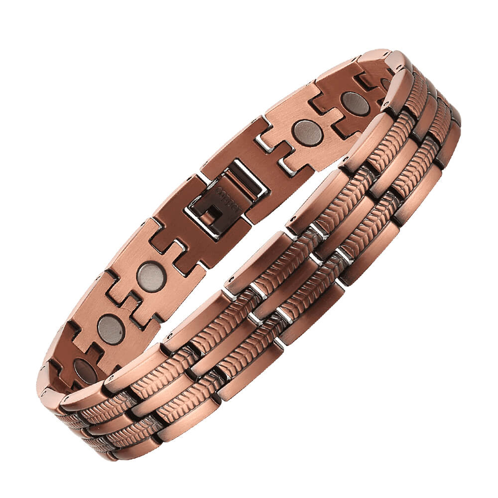 This is a beautiful bracelet, with pure copper links and magnets., perfect for double therapy - copper and magnetic. Our stylish pure copper bracelet combines the healing power of both copper and magnetism, with magnets placed strategically through the inside. Copper possesses anti-oxidant properties and has an anti-inflammatory effect and copper bracelets are frequently used for muscle pain, joint pain, and arthritis. : Multiple magnets on the bracelet, with magnets spaced around the wrist. This enables effective magnetic coverage and therapy.