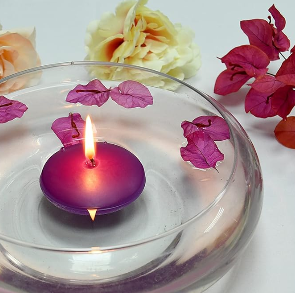 This 50 pc floating candle set is made from paraffin wax and is scented to ensure your house keeps smelling fresh. As their title suggests these candles can float in water and liquid. You can use them in an aromatherapy bath.