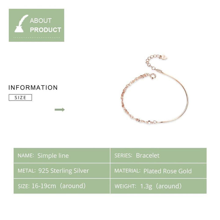 Rose Gold Chain Bracelet. Simple and sophisticated, this stunning rose gold bracelet will add a touch of understated elegance to any modern outfit. The bracelet features a half and half design with half the bracelet crafted from a strong link chain and the other half from a sturdy snake chain. So why not get the best of both worlds and add this bracelet to your collection.