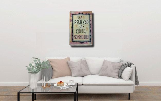 She belived- She DID women quote Wall tin poster- Wall metal tin poster will adorn the look and feel of your room's wall. The wall poster has dimensions of 20 x 30 cm and can be stuck in any corner of your room and it will look just as great.