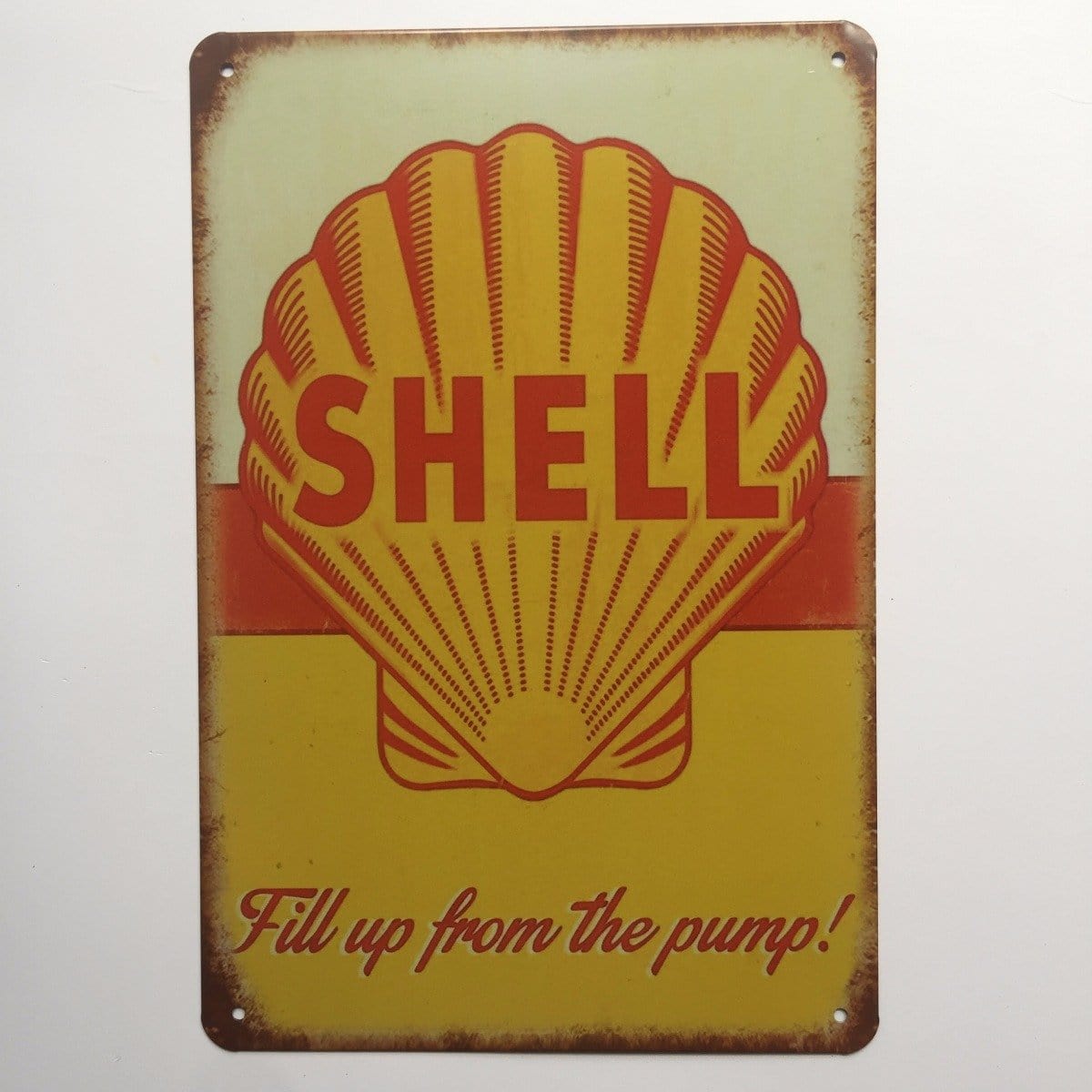 Shell Fill Up The Pump Vintage Metal Poster- Wall metal tin poster will adorn the look and feel of your room's wall. The wall poster has dimensions of 20 x 30 cm and can be stuck in any corner of your room and it will look just as great.