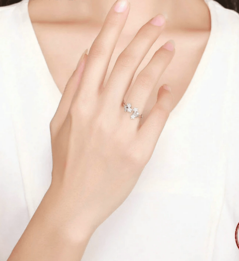 Silver Adjustable Flower Ring