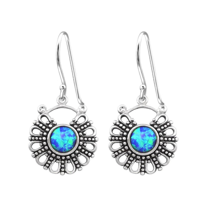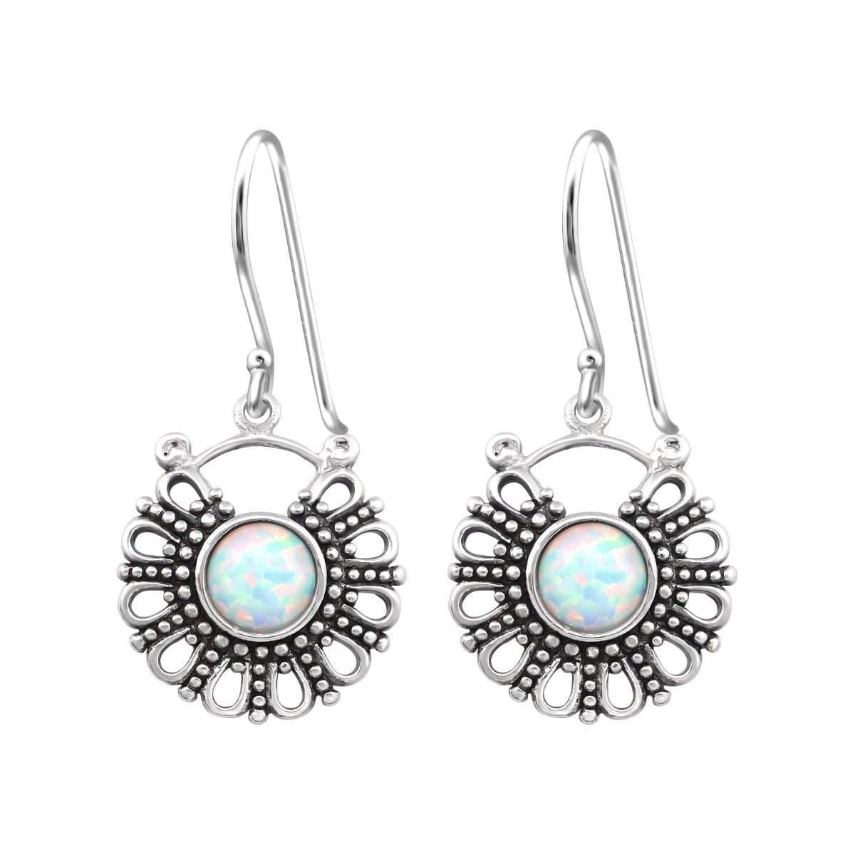 Silver Bali Opal Earrings