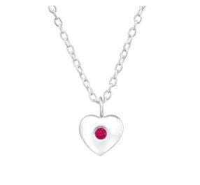 Celebrate the month of your birth with this stunning sterling silver birthstone necklace. The necklace is held by a strong link chain and features a silver heart pendant with a vibrant gemstone at its centre. The gemstone is available in twelve unique birthstone colours.