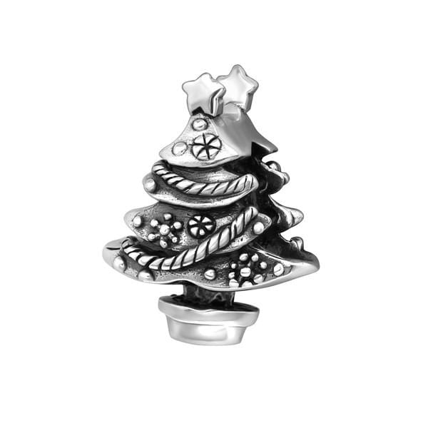 Silver Christmas Tree Charm Bead. Made of sterling silver with exquisite workmanship. Charm For Bracelets & Necklaces.