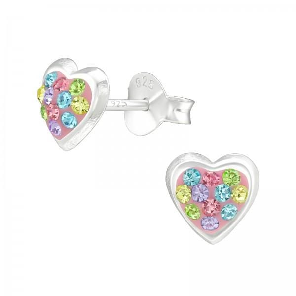 Silver Crystal Heart Stud Earrings