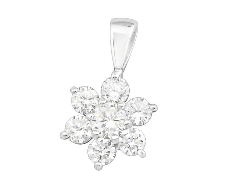 Silver Flower Pendant Necklace with Cubic Zirconias