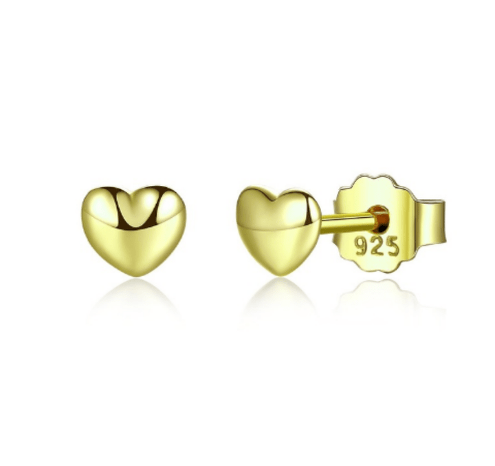 Silver Gold Heart Earrings . Make a romantic statement with this pair of adorable sterling silver heart studs. Available in gold, silver and rose gold hues these elegant stud are perfect for adding a touch of glamour to any everyday ensemble. Their sleek, classic design also makes them perfect for matching in with other precious jewellery.