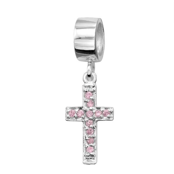 Silver Hanging White Cross Charm Bead