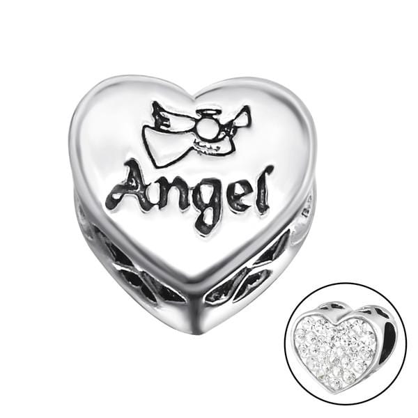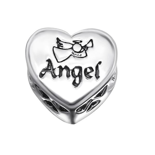 Silver Heart Angel Charm Bead