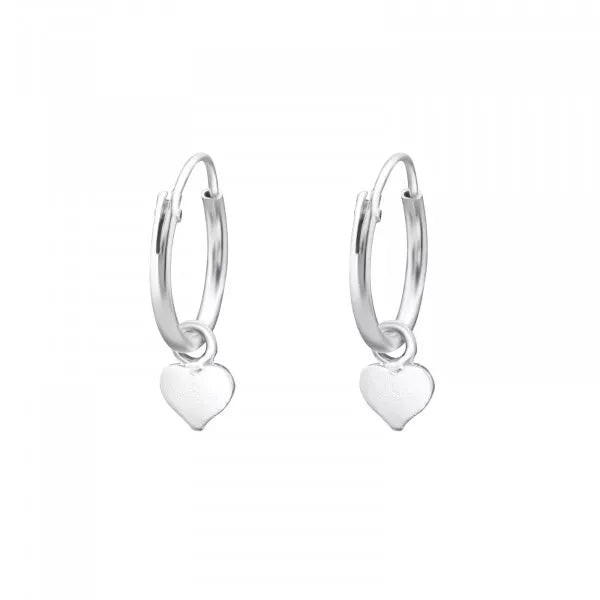 Silver Hoop Earrings with Hanging Heart