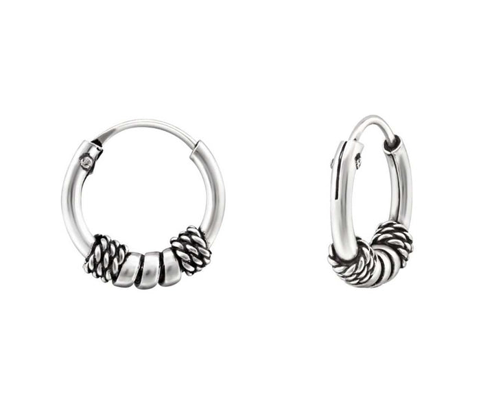 Silver Hoop Earrings with Oxidised Detailing