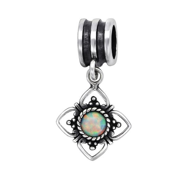Silver Opal Flower Charm Bead Made of sterling silver with exquisite workmanship.Charm For Bracelets & Necklaces.