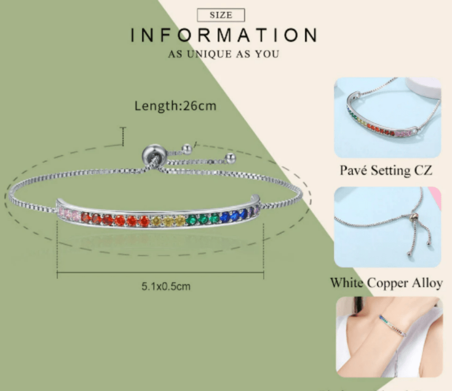 Features : Silver Rainbow Bracelet comes with an elegantly designed and sturdy gift box that is ideal for storing and presenting jewellery.