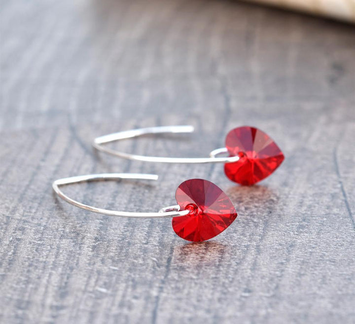 Red - Siam AB Heart Earrings are sure to be the finishing touch to any outfit. Exquisitely crafted in sterling silver and will give your designs an elegant appearance.