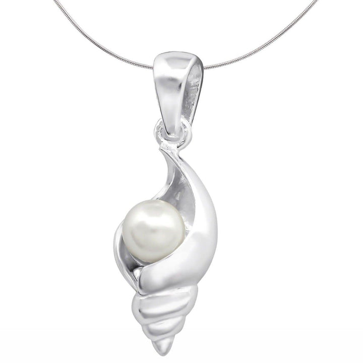 Silver Shell Based Pearl Pendant Necklace