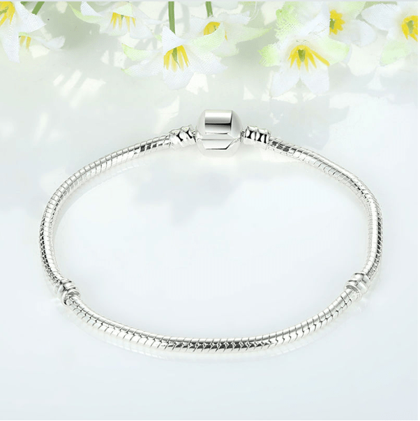 Silver Snake Chain Bracelet. This gorgeous silver snake bracelet is a must-have for any jewellery connoisseur. This sturdy bracelet is perfect for holding a number of many different charms. It is plated in a high-polish silver and is strong enough to hold multiple charms at once.