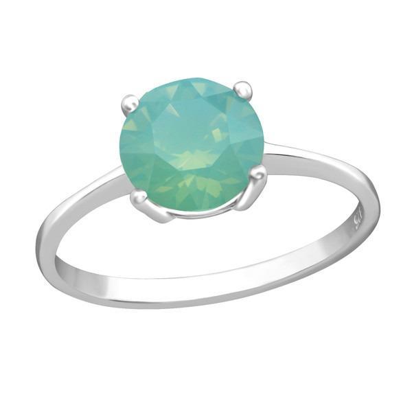Silver Solitaire Engagement Ring. Exquisitely crafted from high-polish sterling silver and featuring a quality Swarovski® gemstone for added sparkle, this elegant engagement ring is the ultimate statement of love and devotion. The zirconia ocean blue hue gives this ring a soft edge and it's golden undertones give it the look of a beautiful pacific opal. Modern and stylish, this tasteful engagement ring is perfect for dressing up casual day wear or complementing evening wear.