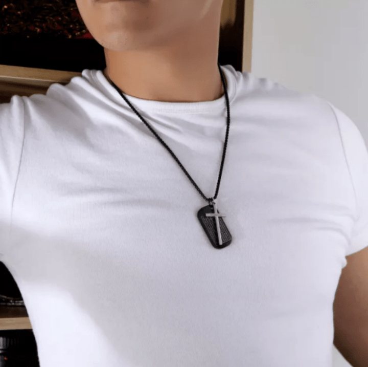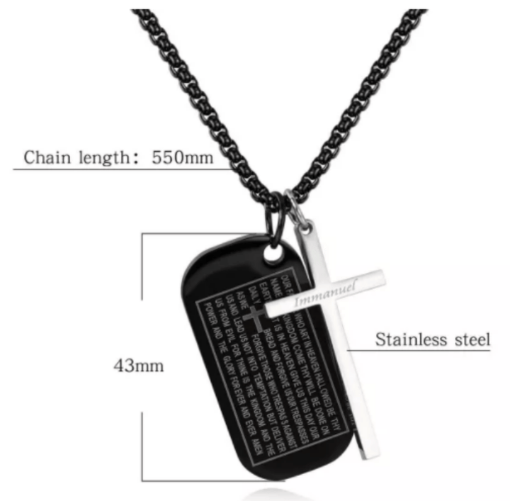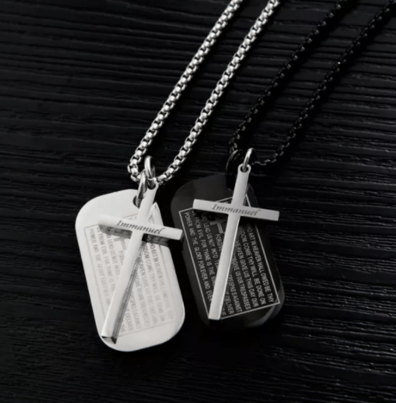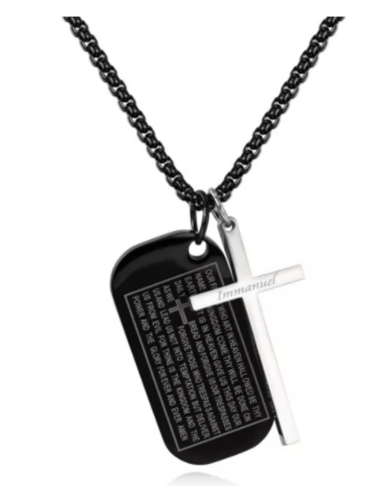 Stainless Men's Bible versus Dog Tag Cross Pendant
