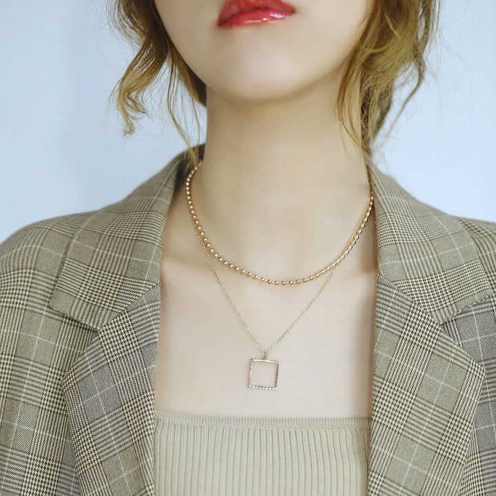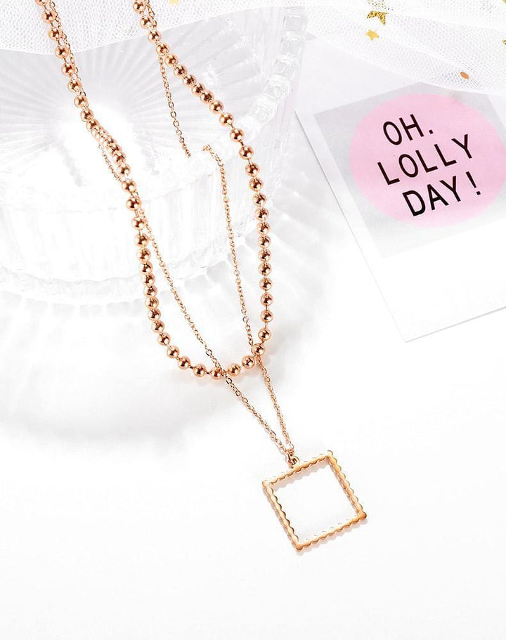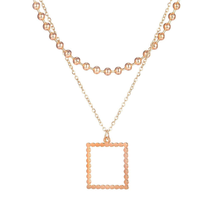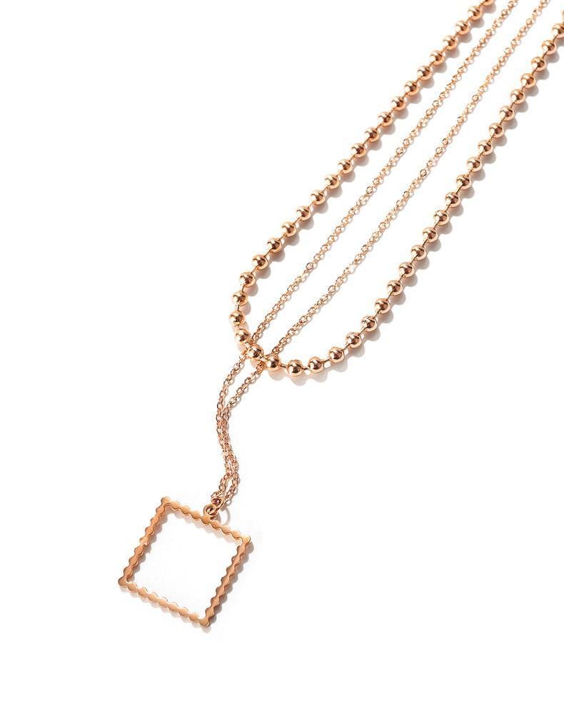 Stainless Rose Gold Ball Layered Chain Necklace