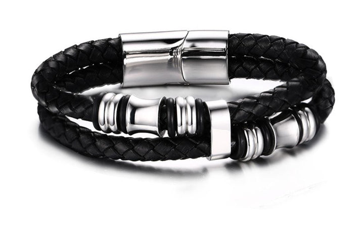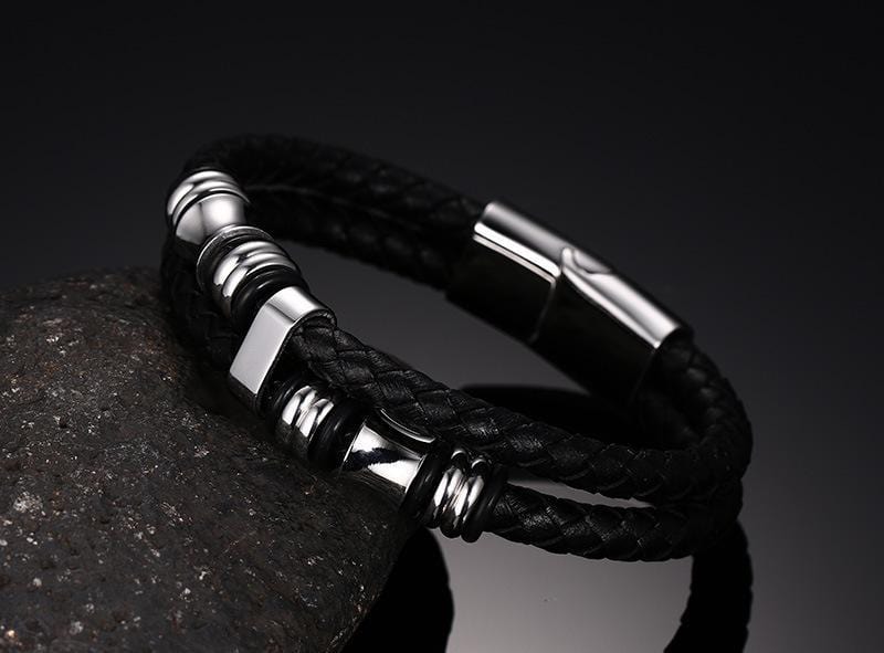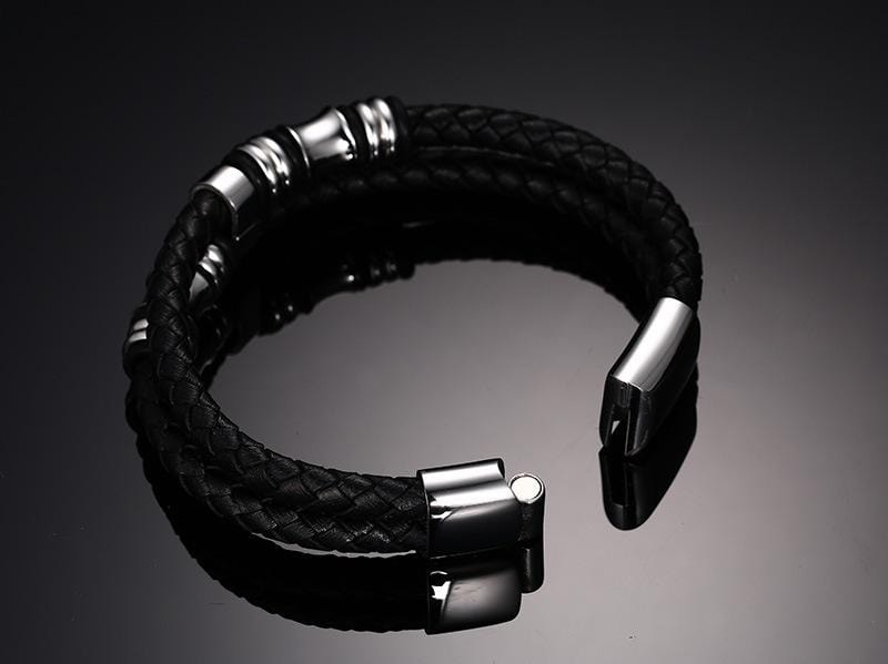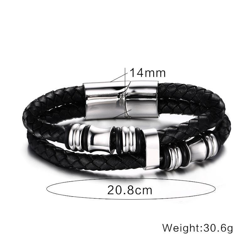 Stainless Steel Beads Leather Bracelet