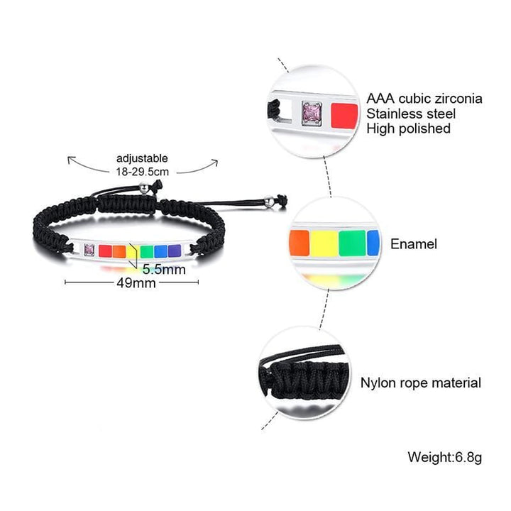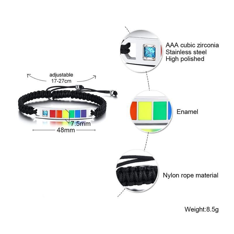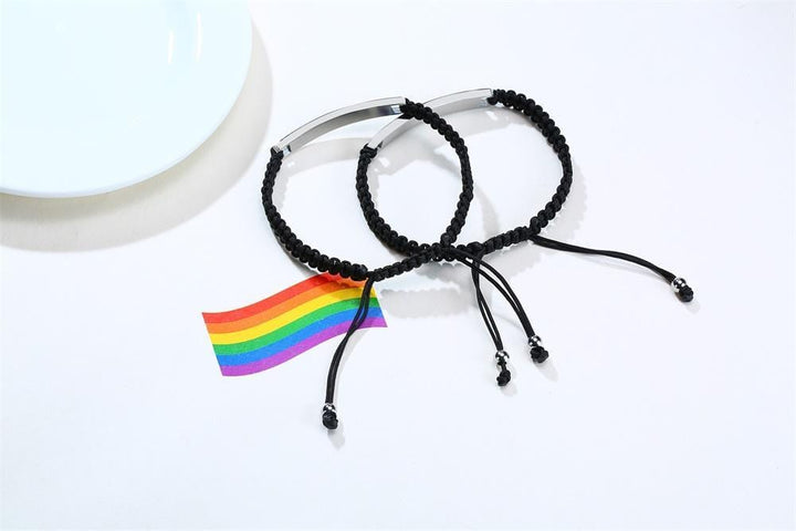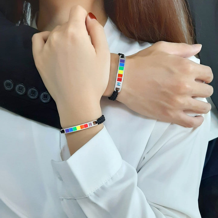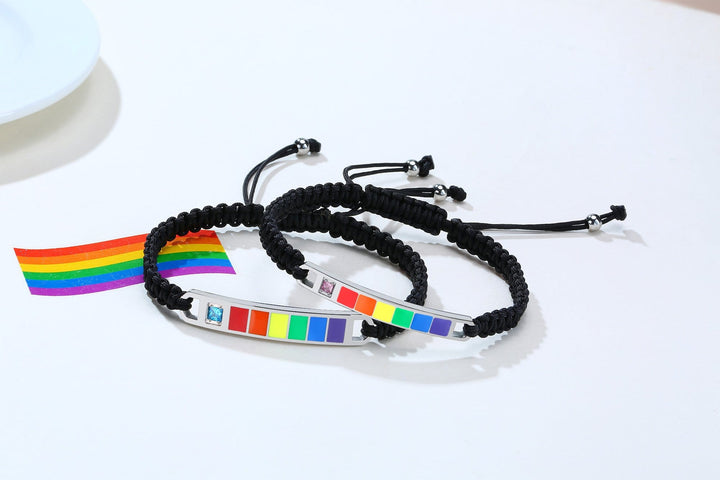 Stainless Steel Braided Rainbow Pride Flag Bracelet for Couple