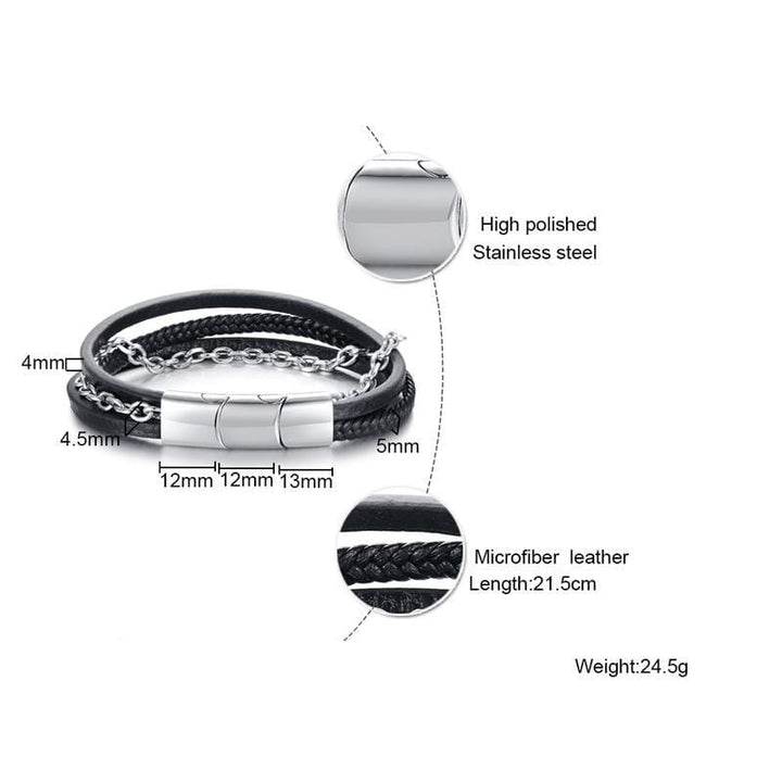 Stainless Steel Leather Bracelet