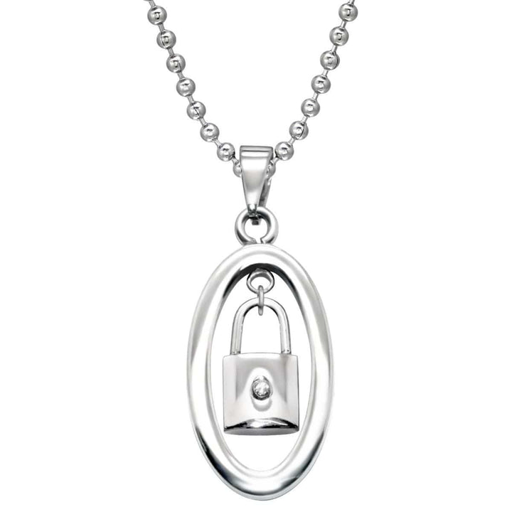 Stainless Steel Lock Pendant Necklace with Cubic zirconia