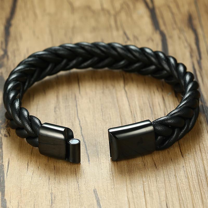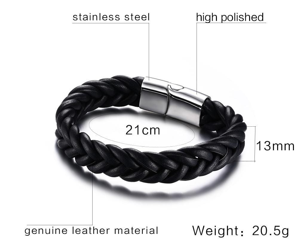 Stainless Steel Magnetic Clasp Leather Bracelet