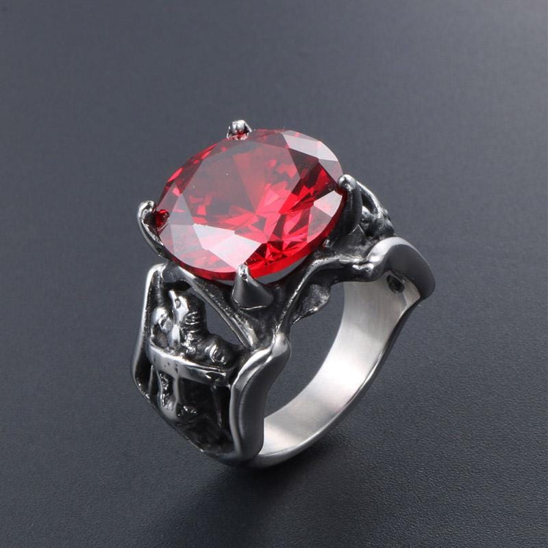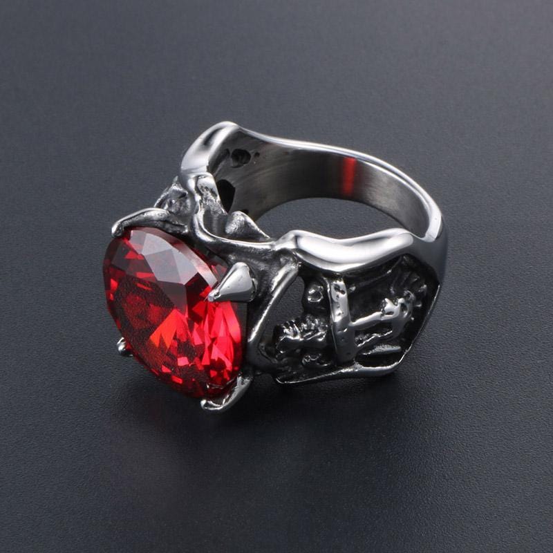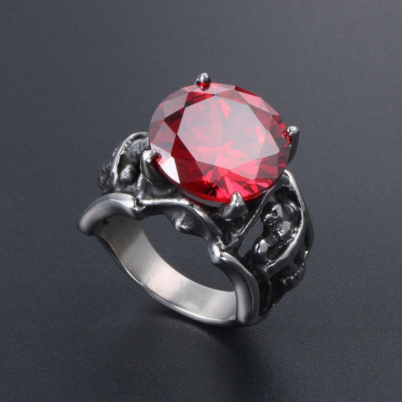 High Quality Stainless Steel Men Biker Ring with Red Stone