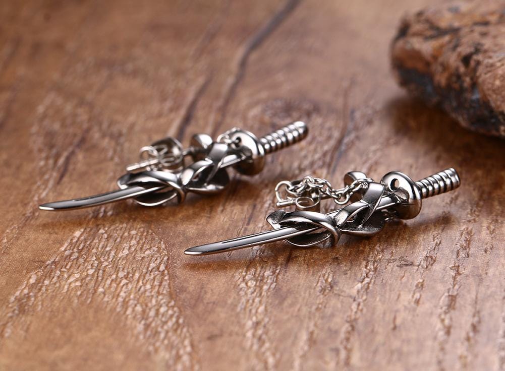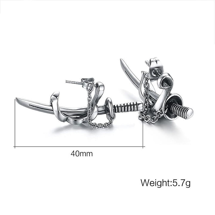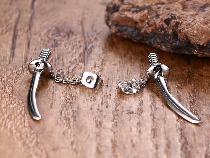Stainless Steel Mens Sword Earrings