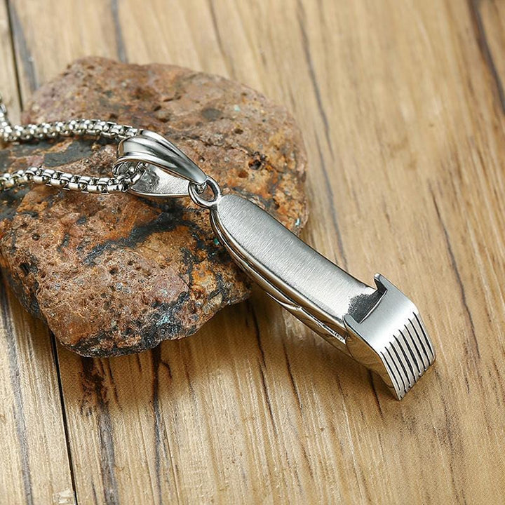 If you are a fan of kitschy and unique jewellery pieces than look no further than this silver shaver necklace. Crafted from stainless steel, this necklace has a strong chain and features an intricately designed pendant that will add a bit of flare to outfits that are both formal or casual.