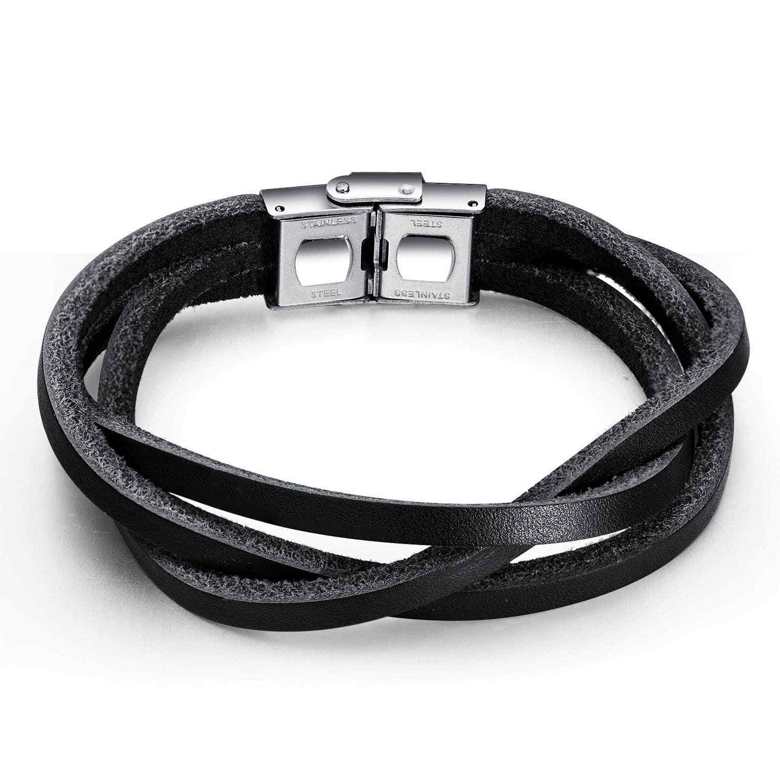 Stainless Steel Multi Strand Leather Bracelet Comes with an elegantly designed and sturdy gift box that is ideal for storing and presenting jewellery.