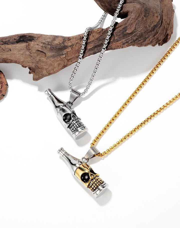 Features:Stainless Steel Wine Bottle Skull Necklace Comes with an elegantly designed and sturdy gift box that is ideal for storing and presenting jewellery.