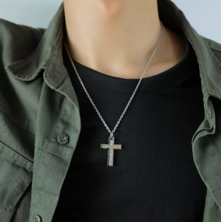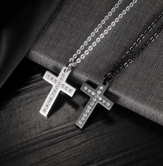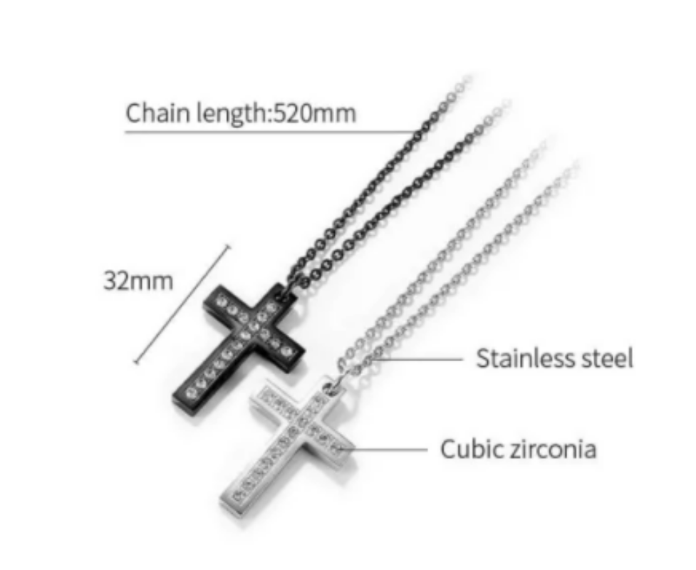 Steel CZ Cross Pendant