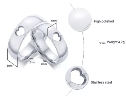 Steel Hollow Wedding Engagement Ring for Couple