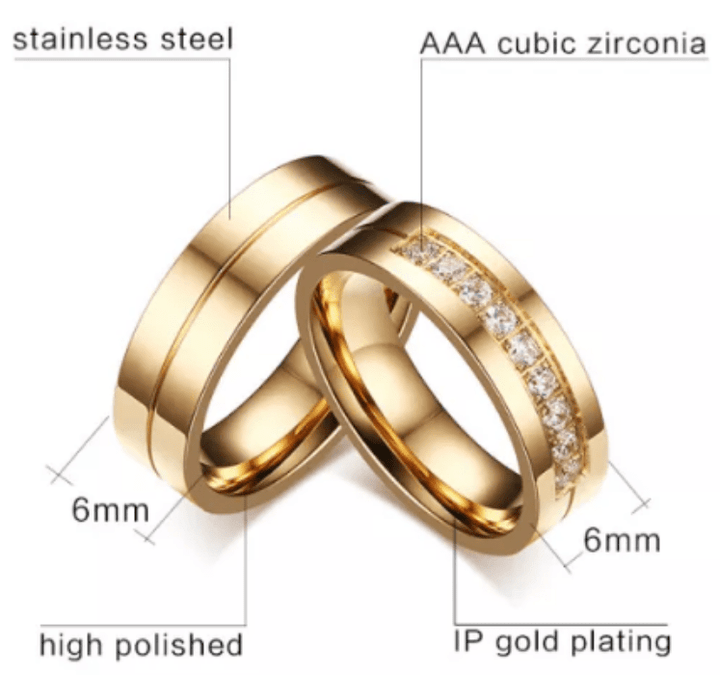 Steel Gold 9 CZs Wedding Engagement Ring for Couple