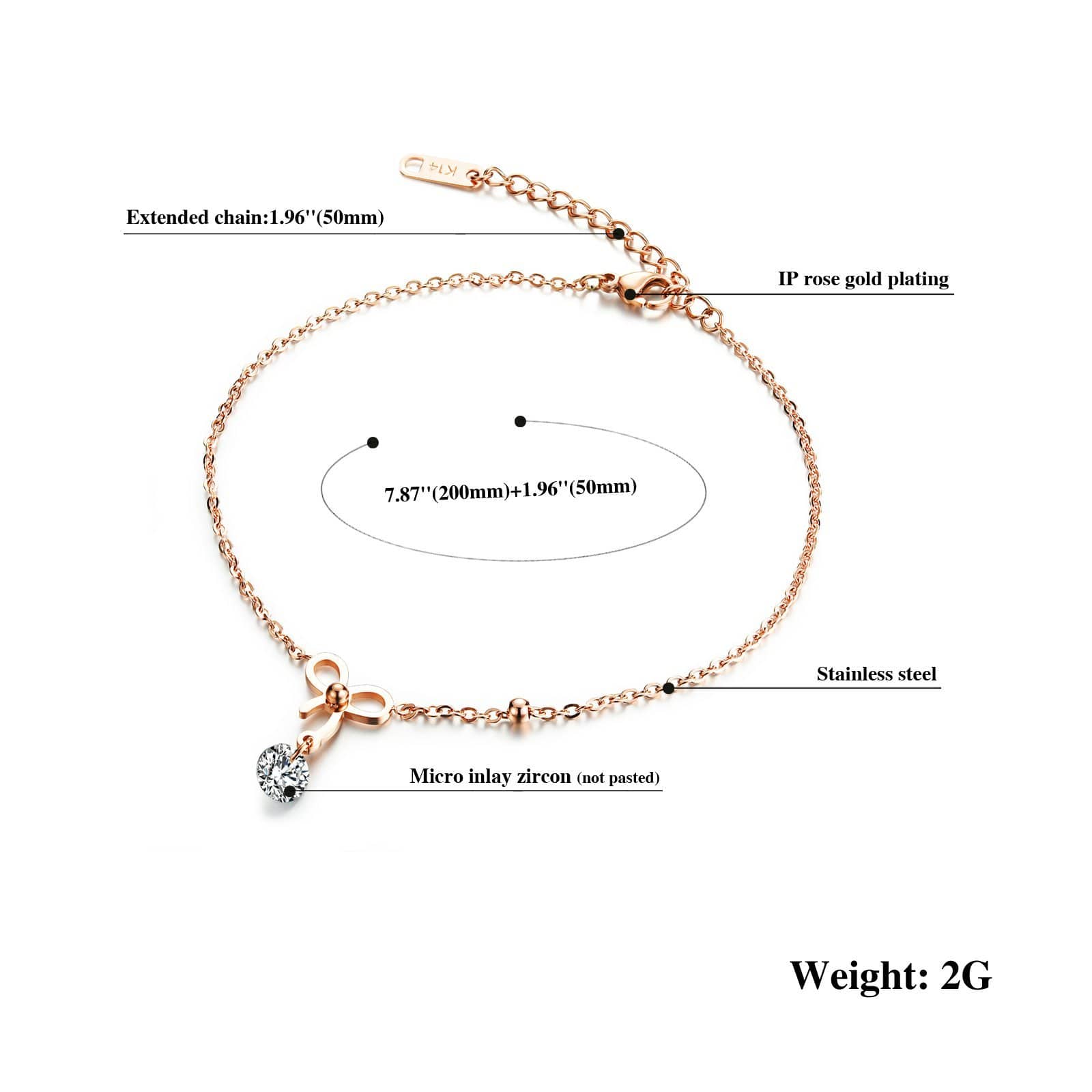 Features:Steel Rose Gold Bow Anklet Comes with an elegantly designed and sturdy gift box that is ideal for storing and presenting jewellery.