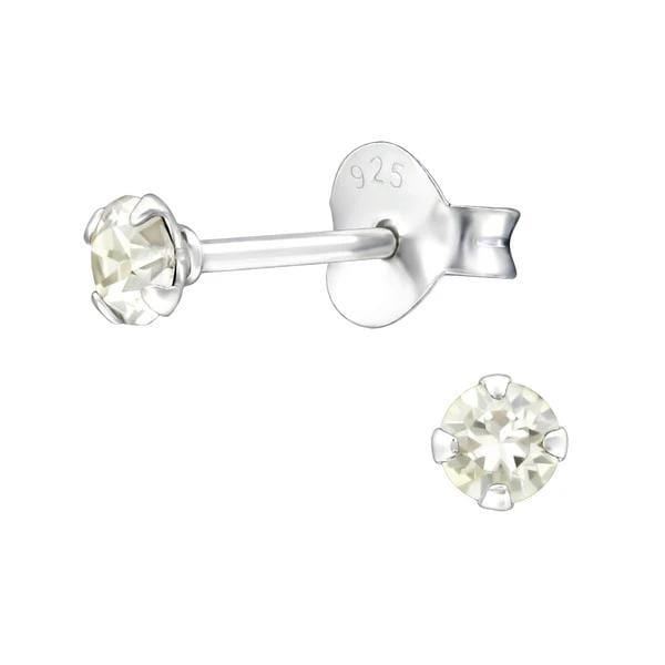 Silver 3 Mm Stud Earrings with Crystal