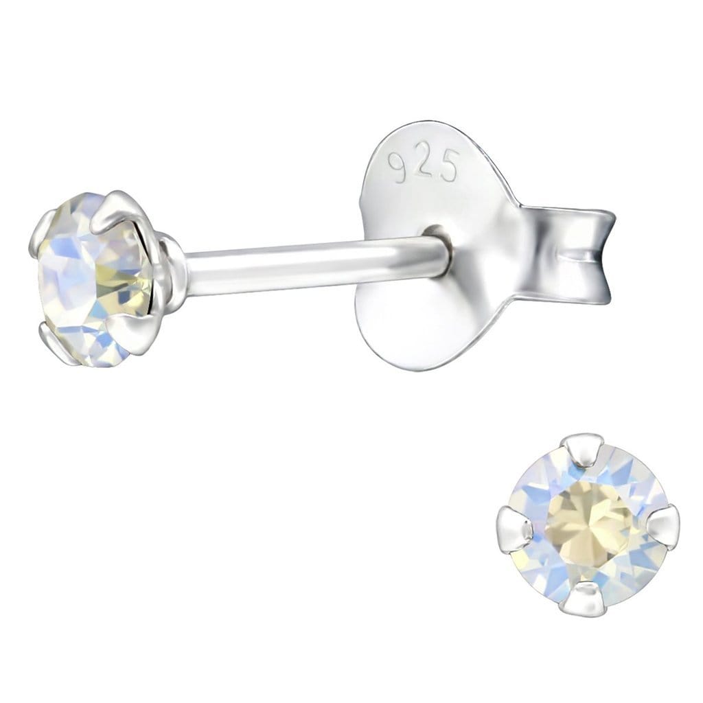 Silver 3 Mm Stud Earrings with Crystal Beautiful and Classic design with a modern edge. Perfect for any Occasion.