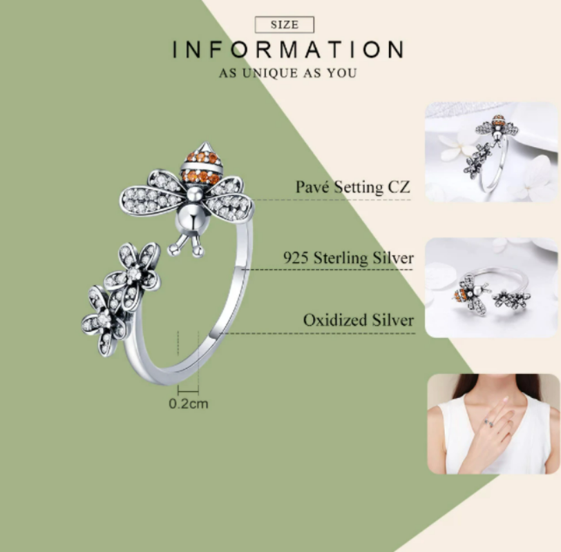 Features : Sterling Silver Bee and Daisy Ring comes with an elegantly designed and sturdy gift box that is ideal for storing and presenting jewellery.